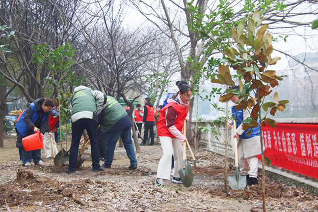 集团总部第二党支部、国投置业公司党委、盐城招商场党总支联合毓龙街道海龙路社区来到市区小洋河景观带,以“共植一片绿 共享盐城蓝”为主题开展了义务植树活动。大家分工明确,共同种下百余株白玉兰和桂树,并纷纷为自己种植的树苗挂上“绿色低碳,我为地球充‘植’”“低碳生活,共建大美盐城”等认领牌。
