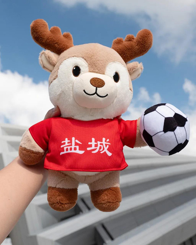 伴随着苏超联赛影响力的持续扩大,团队精心打造的苏超周边文创产品——“盐小茸”系列玩偶一经推出便成为市场新宠。“盐小茸”巧妙融合盐城文化元素,凭借可爱颜值与文化共鸣,频繁亮相各直播间,并在微店、抖音、小红书等国内平台以及亚马逊、TikTok等国际渠道持续热销。