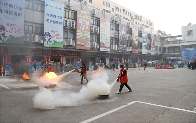 本次灭火演练包括灭火器、消火栓的使用2个演练科目。招商场安全管理部工作人员为大家详细讲解了消防安全知识、市场中容易被忽视的安全隐患、安全防范措施、常见消火栓的类型及使用注意事项等内容。在实操演练中,大家踊跃参与、上手操作,亲身体验使用干粉灭火器扑灭火源的过程,熟练掌握了灭火器的“拔、握、喷”三个主要步骤,并积极动手连接消防水带,体验用水枪灭火,有效提升了防火安全意识和扑救初起火灾的能力。