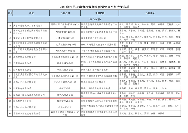 日前,在江苏省电力行业协会主办的2023年度QC成果发布会上,盐城国丰公司QC小组“降低海上风电6.45MW机组电缆故障次数”这一课题,经过资料评审、现场发布等多个环节,荣获成果一等奖。