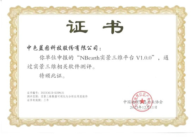 日前,中国地理信息产业协会发布了实景三维相关软件测评结果,由中色蓝图公司自主研发的“NBearth实景三维平台”顺利通过实景三维相关软件测评。