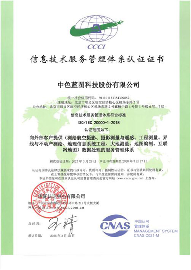 此次体系认证的通过,标志着中色蓝图已经建立了标准化、规范化、系统化的信息技术服务管理体系,将持续向外部客户提供高质量、高效率地理信息技术服务及软件服务,为集团高质量发展注入强劲动能,为行业高标准建设做出更大贡献!