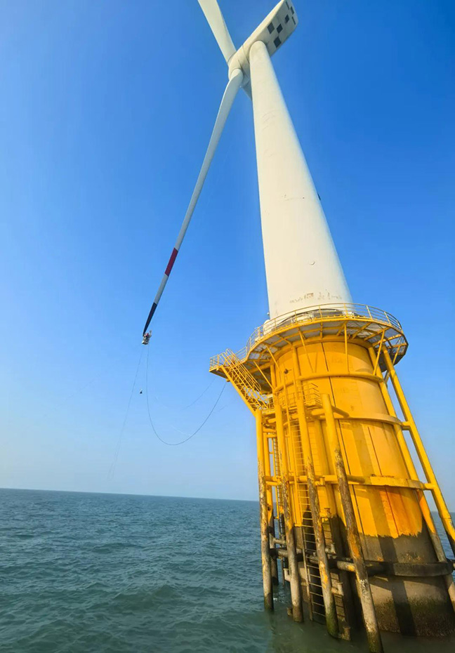 叶片前缘腐蚀每年可能造成发电量损失5%,有时可能损失25%以上,“叶片飞人”的消缺任务非常重要。正是这些 “叶片飞人”在高温下的坚守,及时排查并消除了风机叶片的故障隐患。他们是风机叶片的“守护神”,用汗水和专业在烈焰高空诠释着责任和担当,用实际行动保障了海上风机的稳定运行,为迎峰度夏的电力供应筑牢了防线,为清洁能源的高效利用贡献着自己的力量。