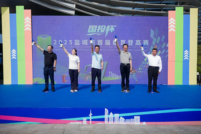 5月20日清晨,当第一缕阳光穿透盐城国贸中心(先锋中心)的玻璃幕墙,216米的盐城最高楼迎来一场震撼全城的 赛事——“国投杯”2025盐城市首届垂直 登高赛。500名运动健儿以脚步丈量51层 空中阶梯,在1270级台阶上展开速度与耐力的终极较量。这场超高难度垂直登高赛事,让整座城市见证了一场“向上生长”的力量。