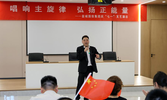 活动期间,集团文艺爱好者们分别走进清能公司党支部、工业地产公司党支部、招商场党总支、新伦石化公司党支部和盐城万豪酒店党支部,通过独唱、对唱、小合唱、朗诵等形式,带来《如愿》《我期待》《大中国》《团结就是力量》等多个经典曲目和朗诵节目。文艺爱好者与支部党员同志以文艺演出传承红色基因,抒发对党和祖国的热爱之情,引起现场观众强烈共鸣。