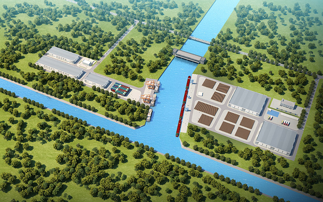 项目总投资1.8亿元,占地102.88亩,建设丙二类标准厂房1.3万平米,厂房层高12.6米,配有露天堆场1.2万平米。建设7个 1000 吨级泊位,其中多用途泊位 2个、件杂货泊位 3 个、待泊泊位 2 个;泊位总长 492 米,其中装卸泊位 348 米、待泊泊位 144 米。目前场地已安装建成1台门座式起重机(16t-25m)。