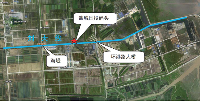 项目位于大丰港区刘大线北岸、环港路大桥上游 1.1 公里处。