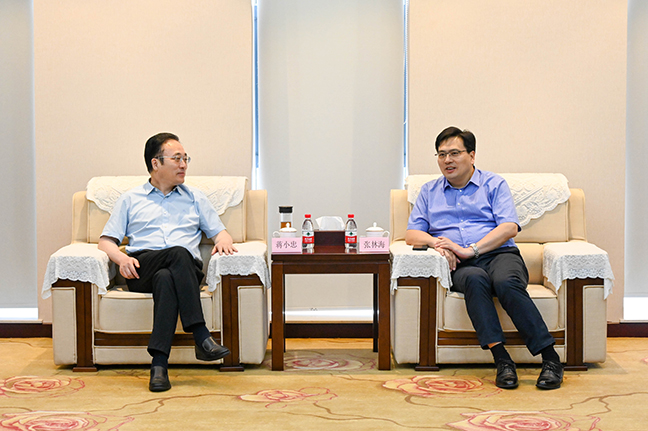7月25日下午,红星美凯龙家居集团党委书记、总裁蒋小忠一行到非凡娱乐集团座谈交流,国投集团党委书记、董事长张林海热情接待。国投集团党委委员、副总经理姜洪柏,红星美凯龙家居集团执行总裁董馨蔚参加座谈会。