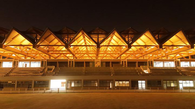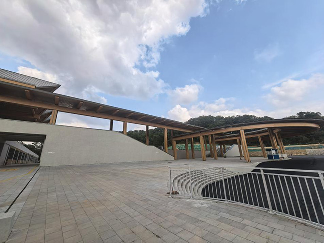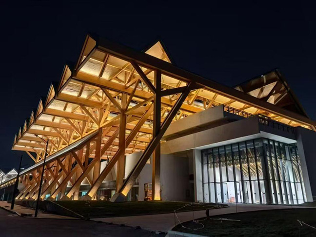光明国际马术中心的主场馆以“木构新境、众檐共景”为核心设计概念,整体采用胶合木结构。苏州昆仑绿建在参与设计过程中,巧妙地将传统木构的榫卯工艺与现代胶合木技术结合,既延续了千年木构技艺的匠心精髓,又赋予了建筑轻盈通透的现代美感,为场馆的稳固性与艺术性提供专业保障。