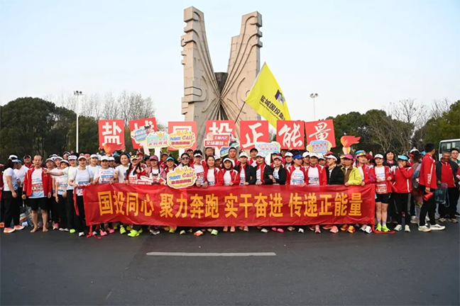 3月29日上午,2026盐城马拉松在奥体中心鸣枪开跑,集团组织150余名干部职工,组成“国投跑团”活力参赛,他们统一着装、步伐坚定以昂扬的姿态和饱满的热情成为城市赛道上一道亮丽的风景线。