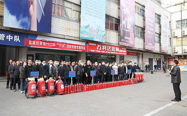 11月9日下午,盐城招商场组织开展“119”消防宣传月消防技能实操演练活动。市场相关部门、驻场城管中队、义务消防队员、市场保洁员、商户代表共200余人参加活动。