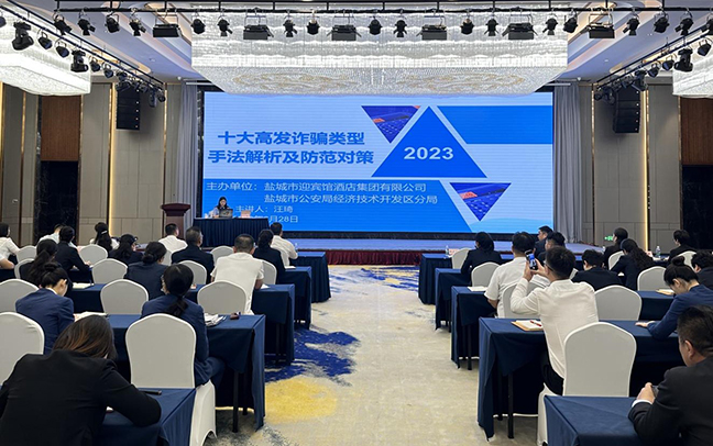 为进一步提升干部职工防范电信网络诈骗意识,增强识骗防骗能力,6月28日上午,盐城市迎宾馆酒店集团举办了反诈防骗知识讲座,特邀市公安局经开区分局反诈小分队汪琦警官进行宣讲,国投集团党委委员、副总经理刘晋国出席活动。