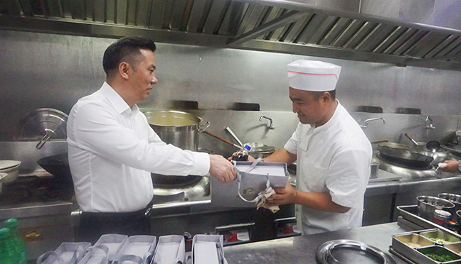 活动中,国投大酒店负责人带领经理层成员,为坚守在高温一线的职工送上了清凉解暑慰问品,并叮嘱他们要注意劳逸结合、做好自我防护。随后,酒店负责人详细了解各一线岗位的防暑降温措施、人员排班等情况,要求相关负责同志坚决守牢安全底线,合理安排作业时间,普及好防暑降温和急救知识,切实做好高温时节各项工作,确保职工的健康和安全。