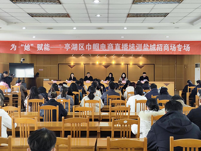 近日,盐城招商场有限公司联合亭湖区妇联共同举办巾帼电商直播培训,市场商户和毓龙街道、大洋街道近120名有电商直播需求的从业者参加了培训活动。