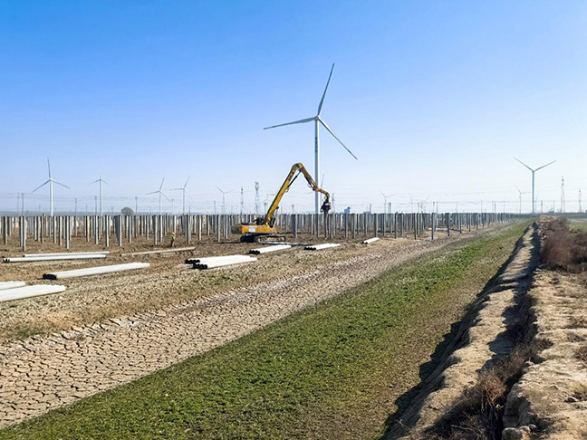 为确保实现“桩基工程开门红”,如期完成并网发电任务,项目管理团队采取双轨并进策略:一方面,科学配置施工资源,通过人员、设备、资金的精准投放,保障各个关键环节;另一方面,建立多部门协同机制保障各道工序有序穿插进行,全力以赴推进项目建设。