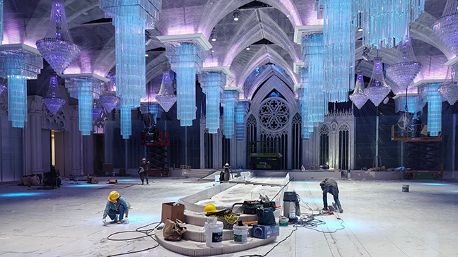 国展宴会中心项目建设进入冲刺阶段,300余名施工人员全力推进室内精装工程,项目团队采用“工序穿插法”,建立“日巡查+专项督导”机制,在确保施工安全与品质的前提下推动项目建设全面提速,向着5月璀璨亮相的目标稳步迈进,力求打造成为我市一流的婚宴殿堂。