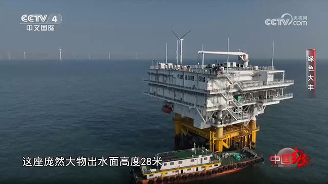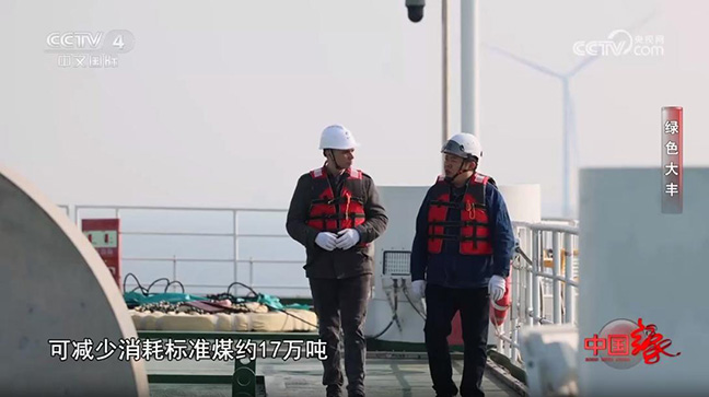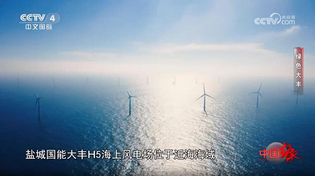 3月2日,CCTV4《中国缘》栏目聚焦绿色大丰,重点关注了盐城国能大丰H5海上风电场。