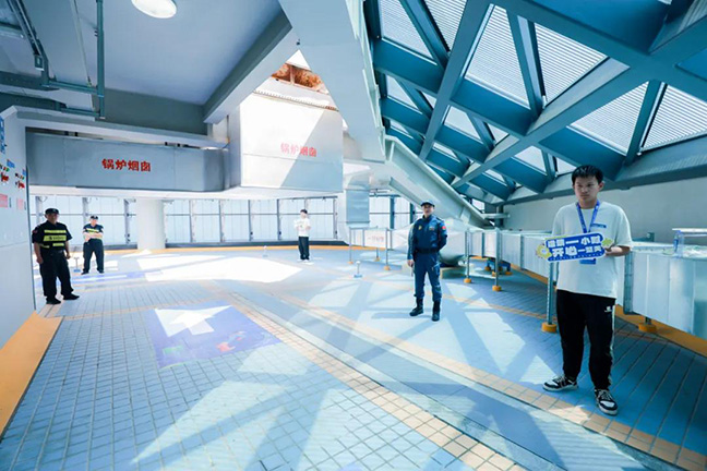 在赛场上,除了奋力拼搏的选手,还有一群默默奉献的志愿者。他们分布在各个楼层,为选手们提供指引、补给、医疗、救助等服务。“看到选手们满头大汗,说一句‘加油’,希望能给他们带来一些力量。”志愿者郑雨泽是盐城机电高职的学生,他和同学们负责楼道指引。