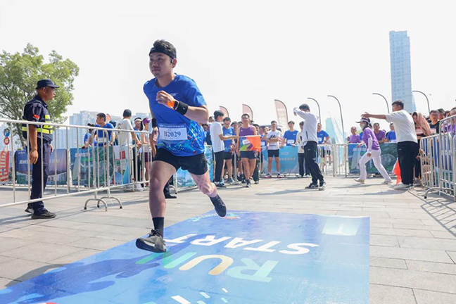 除本地跑者外,本次赛事还吸引了很多外地高手参加。“我参加爬楼登高赛100余场。”来自湖南的选手薛剑东今年34岁,在全国20多个省参加过爬楼比赛,均获得前三名,还在世界巡回赛中获得国际第三名;选手何亮亮多次参加上海东方明珠登高赛,夺得过4次冠军;女选手乐青华不仅获得多个冠军,还是2023上海环球金融垂直登高、2024澳门登高、2024杭州来福士垂直登高的记录保持者。