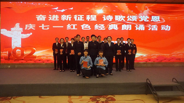 为庆祝中国共产党成立102周年,弘扬伟大建党精神,抒发爱党爱国情怀,6月29日下午,非凡娱乐大酒店党支部联合国投中科党支部以“奋进新征程 诗歌颂党恩”为主题,开展了庆“七一”红色经典诵读活动。