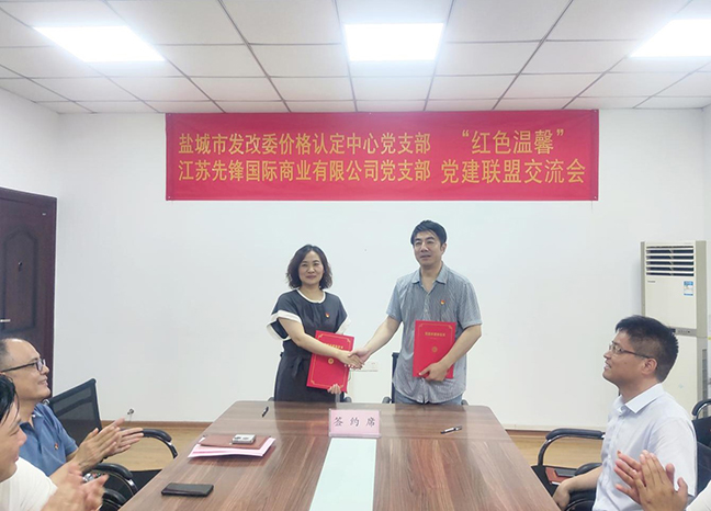 7月21日下午,先锋商业公司党支部和市发改委价格认定中心党支部开展了“红色温馨”结对共建活动。市发改委机关党委专职副书记王勇,机关党委二级主任科员张锦锋,先锋商业公司党支部和价格认定中心党支部全体党员参加活动。