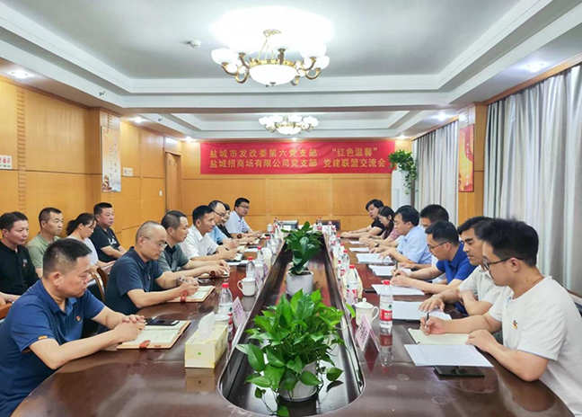 8月22日下午,盐城招商场党总支和市发改委机关第六党支部开展了“红色温馨”结对共建活动。市发改委机关党委二级主任科员张锦锋,市发改委基础设施发展处负责人、机关六支部党员代表,盐城招商场党员代表参加活动。