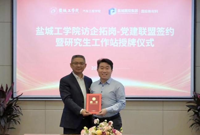 双方还签订了党建联盟协议,王资生为国投新材料公司进行研究生工作站授牌,国投新材料公司为盐城工学院汽车工程学院副院长郑竹安颁发“科技副总”聘书。双方一致表示,要以此次合作为契机,搭建学习交流平台,在产学研深度融合、学院学生就业上进一步加强沟通对接、深化战略合作,携手谱写校企合作新篇章。