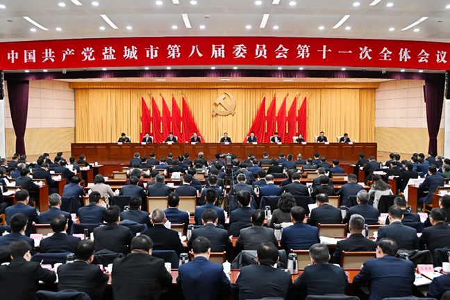 12月4日,中国共产党盐城市第八届委员会第十一次全体会议召开。全会坚持以习近平新时代中国特色社会主义思想为指导,认真学习贯彻党的二十届四中全会精神,深入学习贯彻习近平总书记对江苏工作重要讲话精神和在盐城考察时重要指示精神,全面落实省委十四届十次全会部署,动员全市上下传承发扬不怕困难、不畏艰险,勇于斗争、敢于胜利的精神,坚定不移“向海图强、向绿而兴、向新转型”,以实干争先的状态、走在前列的姿态,推动“强富美高”新盐城现代化建设迈上新的阶梯。