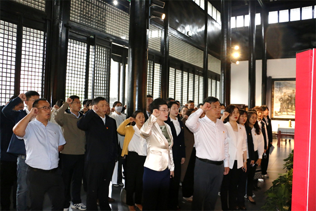 本次活动以“践行‘三个务必’ 庚续红色血脉”为主题。活动中,4个基层党组织的党员干部职工首先来到新四军重建军部旧址(泰山庙),从老照片、文献、历史实物中深入了解当年新四军在艰苦环境中浴血奋战、英勇抗敌的光辉历程,感受革命先烈们忠贞不渝的爱国主义情怀。在纪念馆大厅,全体党员面向党旗重温入党誓词,表达不忘初心、牢记使命的坚定信念。